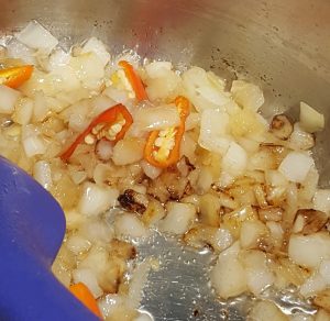 Fry onions with the chillies until a little caramelised