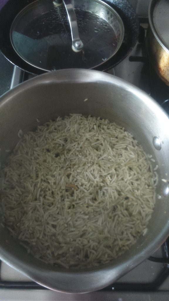 So, let me begin by saying the 7 year old is addicted to spinach rice. Or what you might see on indian restaurant menus as ‘palak pilau’. No, I never noticed it either.